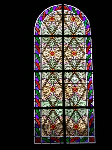 Verrières à personnages des baies 2 et 6 : Saint Joseph, Saint Germain d'Auxerre, et 8 verrières décoratives des baies 1, 3 à 5, 7 à 10,