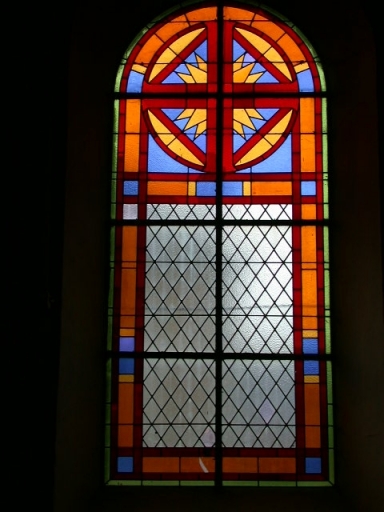 Verrières à personnages des baies 2 et 6 : Saint Joseph, Saint Germain d'Auxerre, et 8 verrières décoratives des baies 1, 3 à 5, 7 à 10,