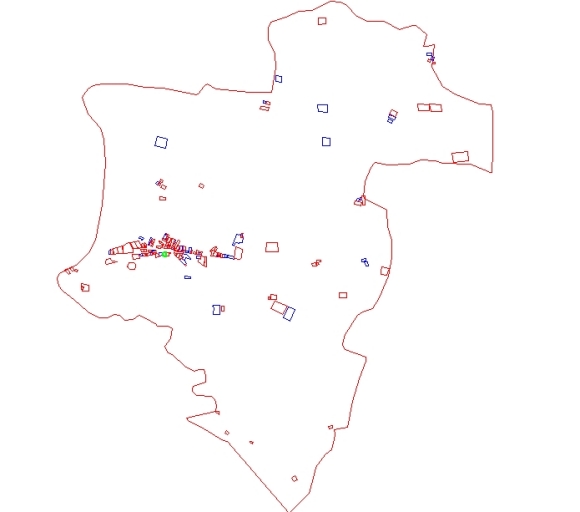 En bleu, les maisons et les fermes non analyséesImmatriculation