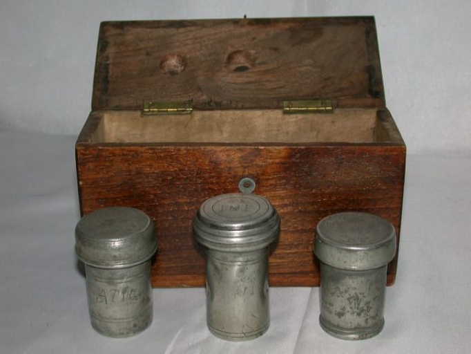 Coffret aux saintes huiles et 3 ampoules aux saintes huiles,