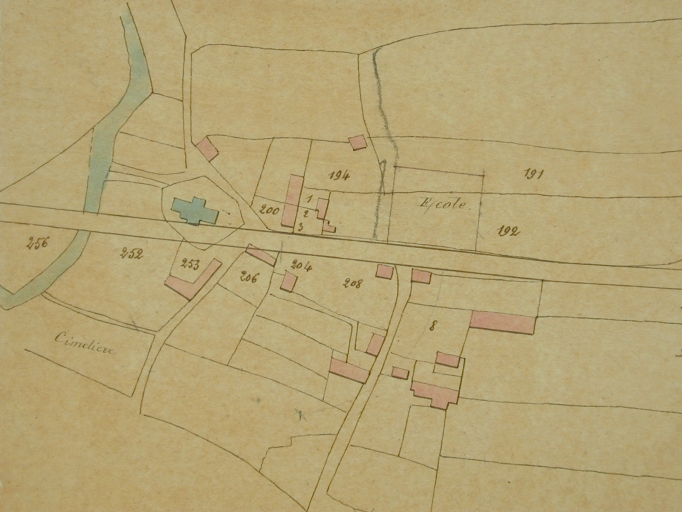 Plan du bourg avec l'ancienne église (1882)Immatriculation