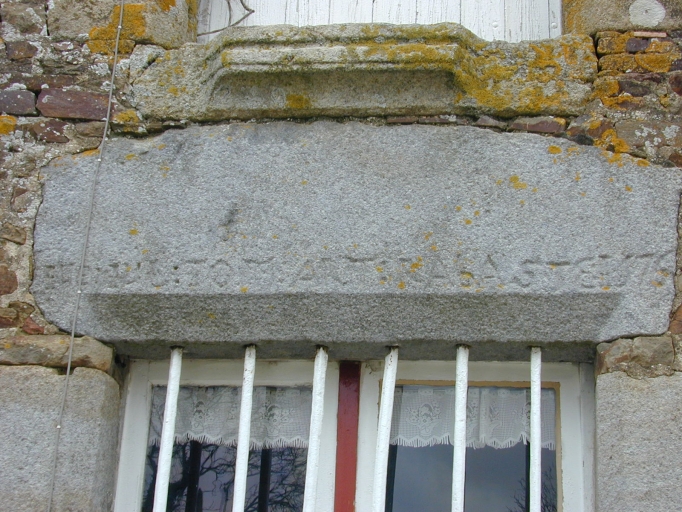 Inscription sur la fenêtre grillée et appui de l'ouverture de l'étageImmatriculation