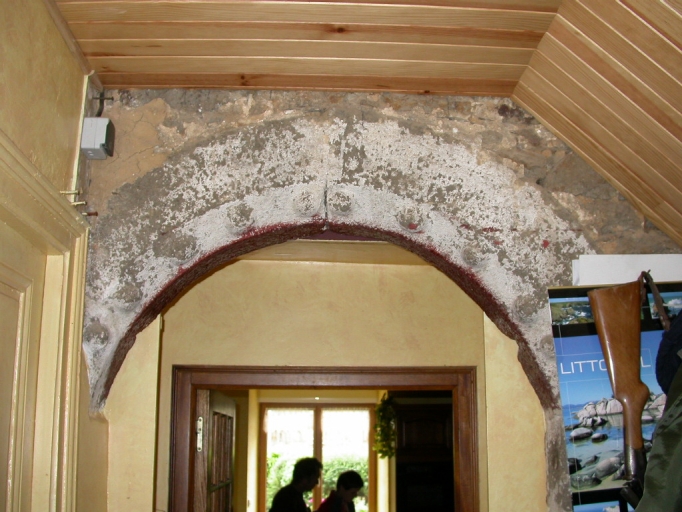 Arc en plein cintre décoré de boules sur la façade arrière du logisImmatriculation
