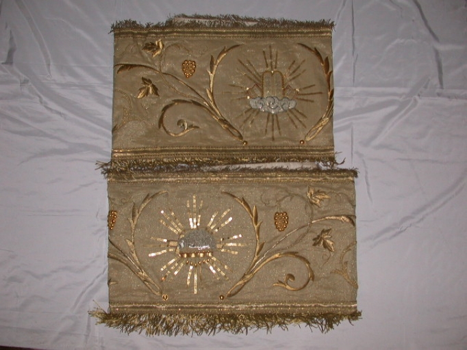 Garniture de dais de procession : éléments portant les Tables de la loi et l'Agneau aux sept sceauxImmatriculation