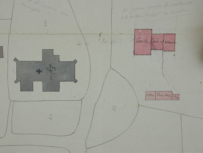 Plan de situation de la mairie-école dans le bourgImmatriculation