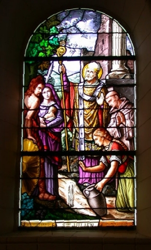 6 Verrières baies 1 à 8 : Saint Casimir ; Saint Julien ; Saint Pierre ; Education de la Vierge ; Mariage de la Vierge ; Baptême du Christ,