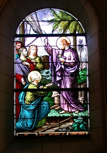 6 Verrières baies 1 à 8 : Saint Casimir ; Saint Julien ; Saint Pierre ; Education de la Vierge ; Mariage de la Vierge ; Baptême du Christ,