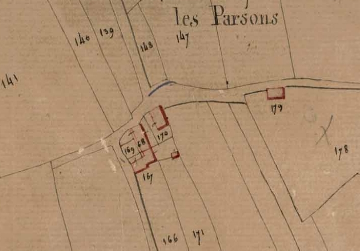 Vue de la ferme des Parsons sur le cadastre napoléonien de 1827Immatriculation