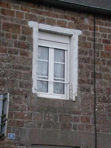 Détail d'une fenêtre encadrée d'un carré de boisImmatriculation