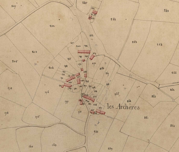 Vue de l'écart des Archères sur le cadastre napoléonien de 1827Immatriculation