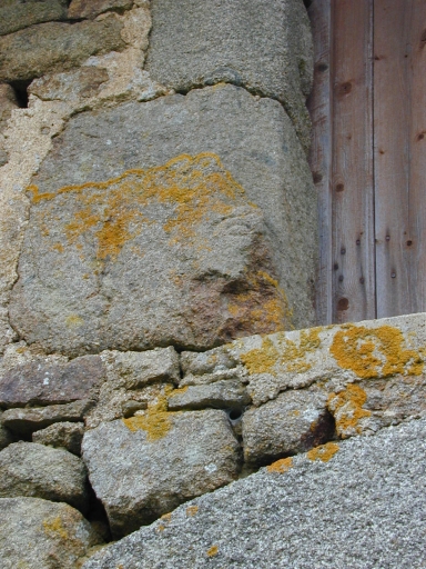 Détail du jambage de la porte haute : tête de personnage sculptéeImmatriculation