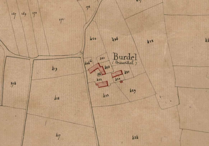 Vue du Burdel sur le cadastre napoléonien de 1827Immatriculation