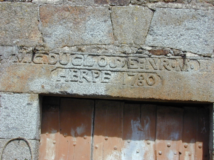 Détail du linteau portant une inscription et la date de 1780Immatriculation