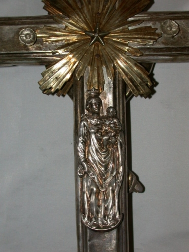 Vue rapprochée de la Vierge à l'enfant de la croixImmatriculation
