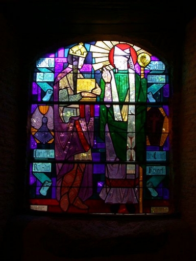 Verrières Baies 3 à 8 (verrières à personnages) : Sainte Anne ; saint Louis ; sainte Jeanne d'Arc ; saint Melaine,