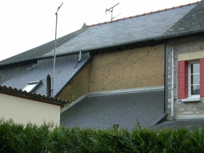 Vue arrière : mur en terre et cellier en appentisImmatriculation