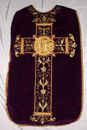 Ornement violet 2 : chasuble, bourse de corporal, étole,