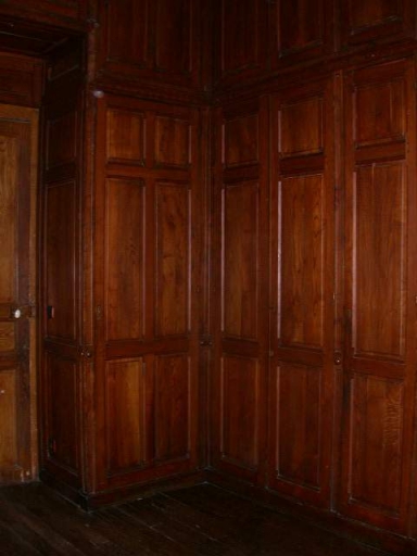 Meubles de sacristie : chasublier, chapier, armoires, bureau, lambris,