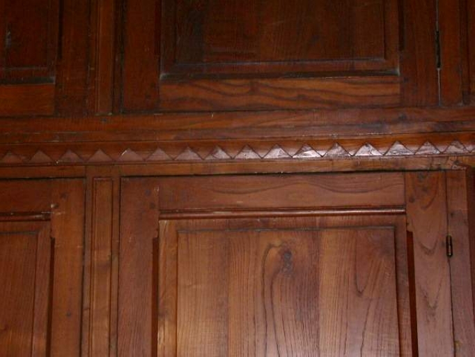 Meubles de sacristie : chasublier, chapier, armoires, bureau, lambris,