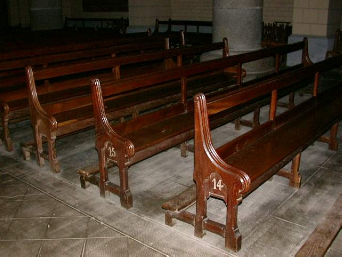 Ensemble de 41 bancs de fidèles,