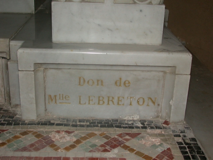 Base de la colonnette : inscription mentionnant le donateurImmatriculation