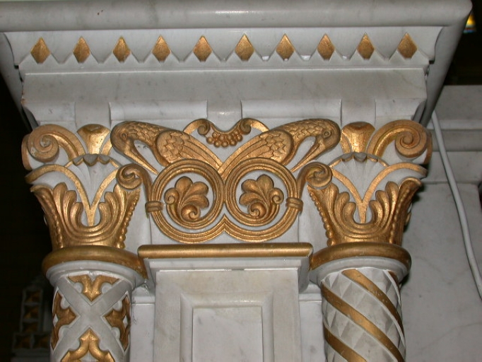 Tabernacle, aile gauche, extrémité servant de socle au luminaire : chapiteauImmatriculation