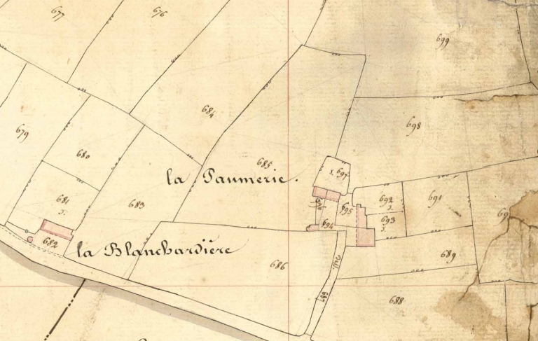 Alignement de deux fermes, puis ferme, la Pommerie (Montreuil-le-Gast),