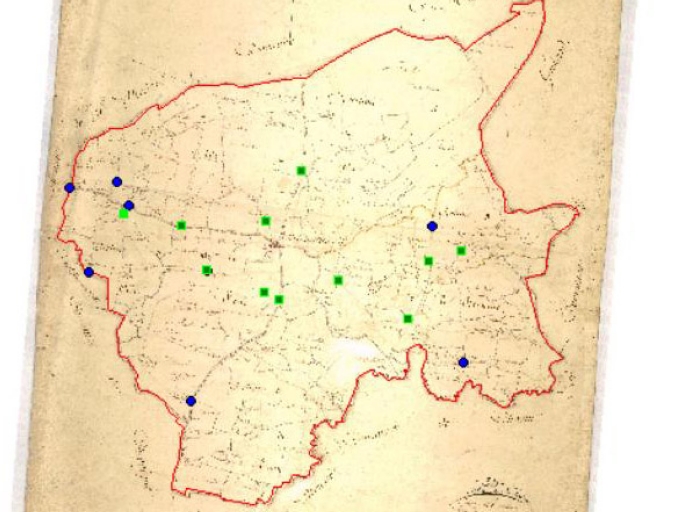 Les croix recensées en vert, celles disparues en bleuImmatriculation