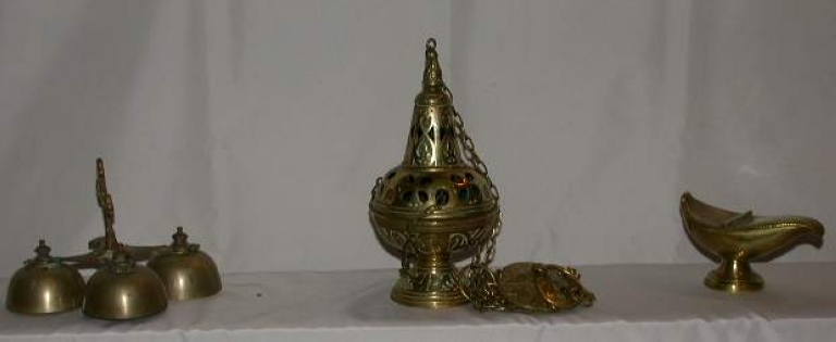 Sonnette liturgique, encensoir, navette à encensImmatriculation