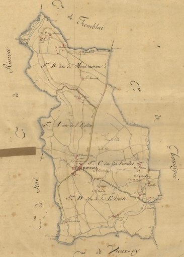 Tableau d'assemblage du cadastre de 1828 : la commune de RomazyImmatriculation