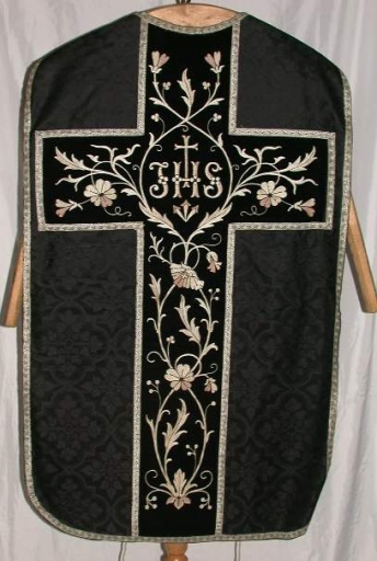 Ornement noir 2 : chasuble, bourse de corporal, étole, manipule, voile de calice,