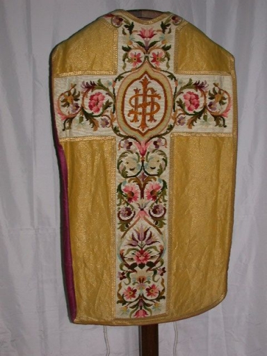 Ornement doré 1 : chasuble, étole, manipule et bourse de corporal,