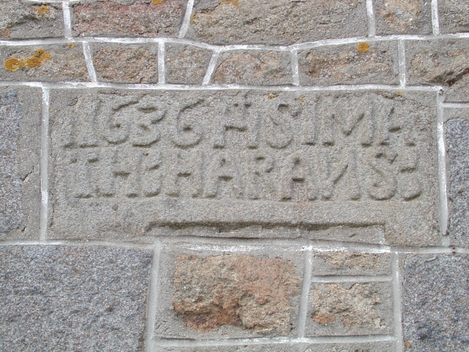 Pierre gravée utilisée en remploi sur un corps de logisImmatriculation