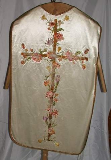 Ornement blanc 3 : chasuble, bourse de corporal, étole, voile de calice,