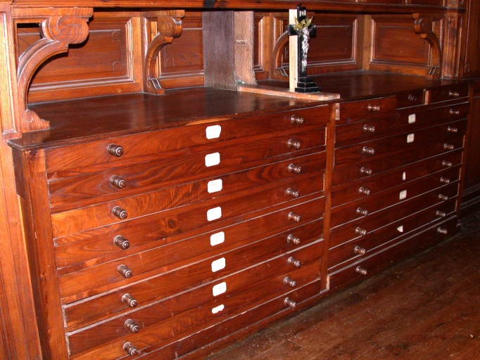 Meubles de sacristie : chasublier, armoires, confessionnal,