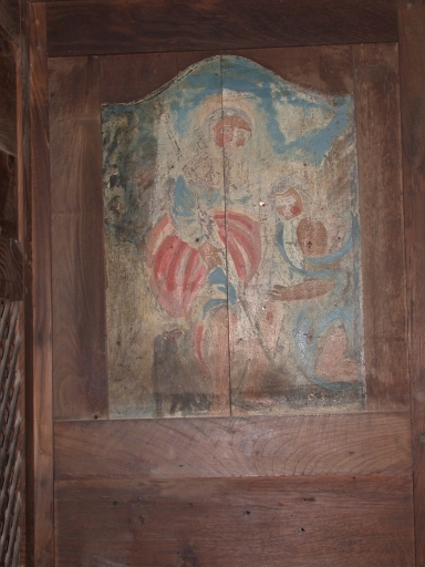 Panneau peint remployé dans le fond de la loge droite : Baptême du Christ ?Immatriculation