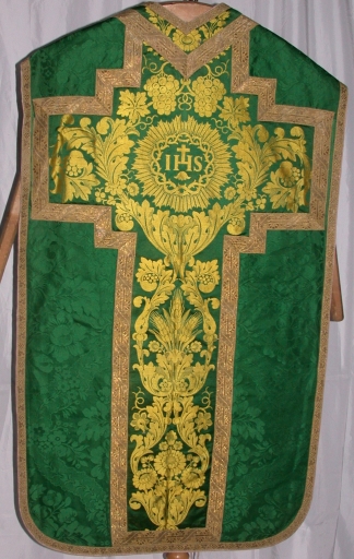 Ornement vert 2 : chasuble, bourse de corporal, étole, manipule, voile de calice,