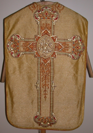 Ornement doré 1 : chasuble, bourse de corporal, étole, manipule, voile de calice,