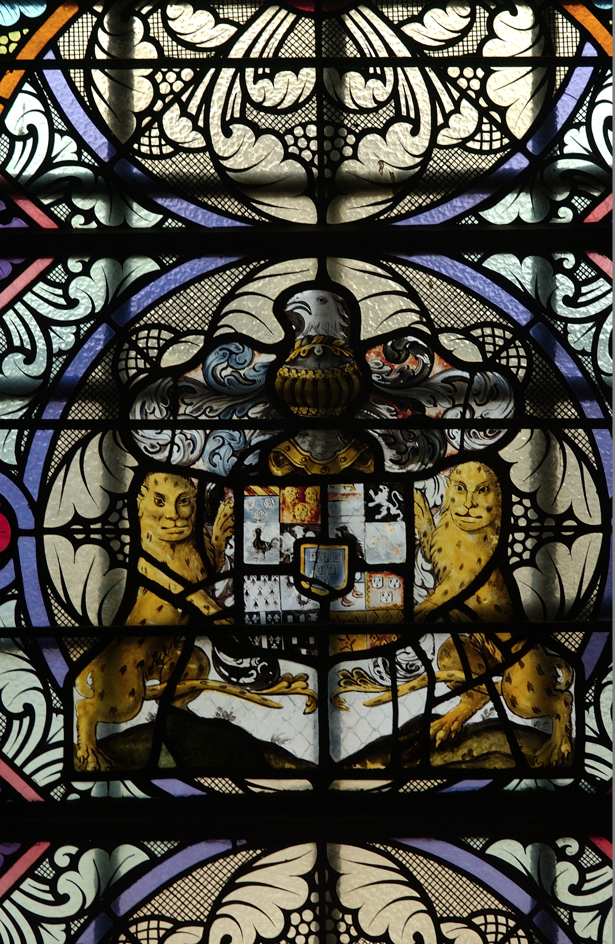Verrière de la baie 2 : détail des armes de la famille HuchetImmatriculation