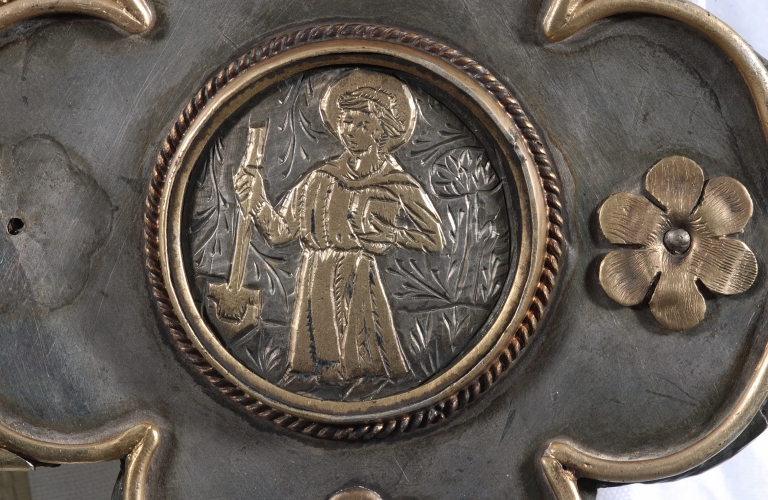 Croix de procession : médaillon de saint FiacreImmatriculation