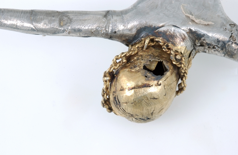 Croix de procession : détail arrière tête du ChristImmatriculation