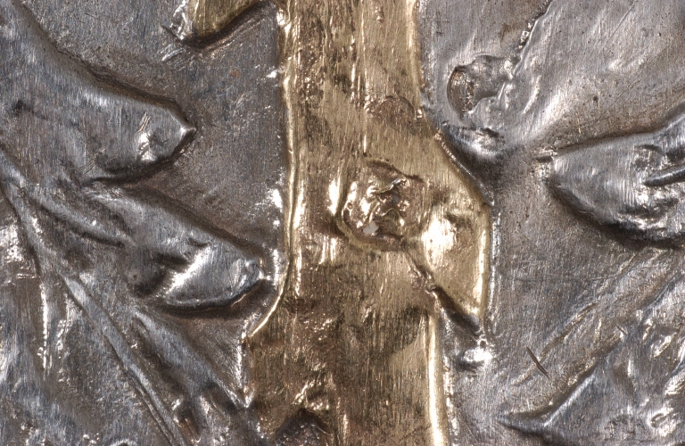 Croix de procession : trace de poinçons sur le brasImmatriculation