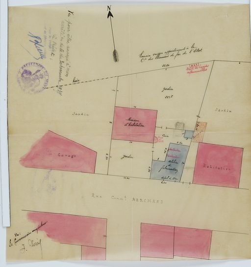 Plan parcellaire de la maison et de l'atelier de fabrication, 30 novembre 1937. AD Morbihan 5M229.Immatriculation
