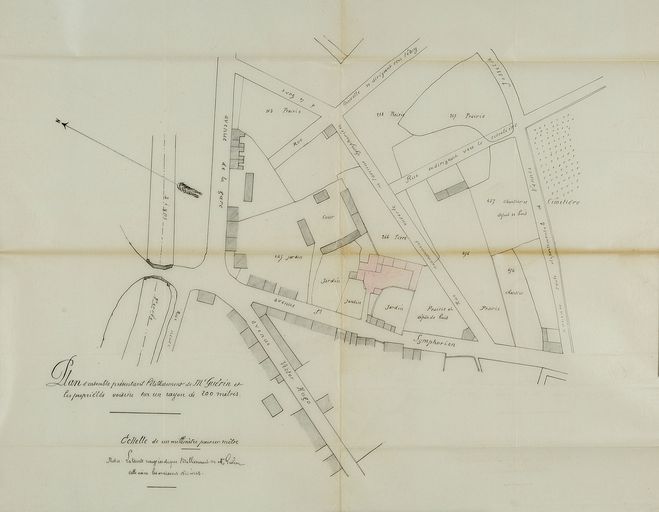 Plan parcellaire de situation des établissements Guérin dans l'avenue Saint-Symphorien, 1889. AD Morbihan 5M229.Immatriculation