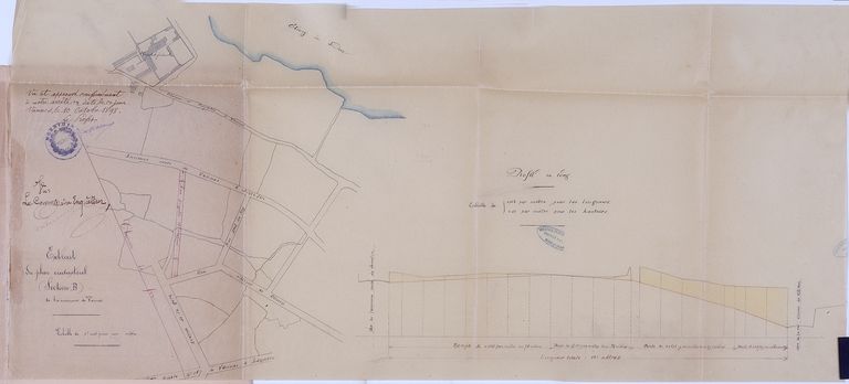 Extrait du plan cadastral. Tracé de la rue projetée, approuvé le 10 octobre 1898. AD Morbihan 3O2180.Immatriculation