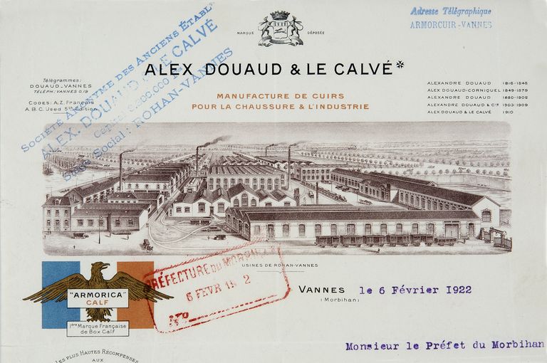 Papier à en tête de la tannerie de Rohan, détail. AD Morbihan 5M 235.Immatriculation