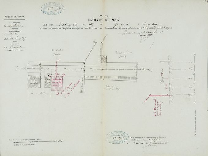 Plan d'alignement de la maison Gapais, décembre 1888. AD Morbihan S 1552 arrêtés d'alignement.Immatriculation