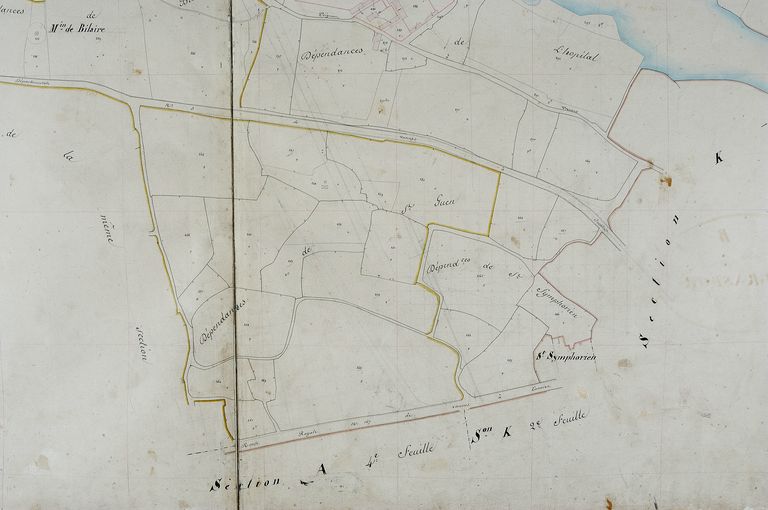 Plan cadastral de 1844 : section B2 : Saint-Guen, dépendances de Saint-Symphorien. AM Vannes 21 Fi.Immatriculation