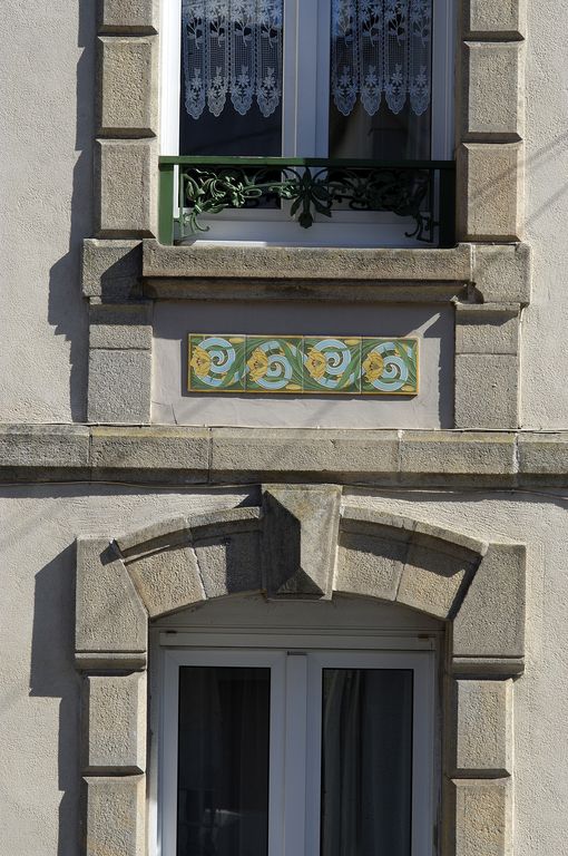 Décor de céramique et garde-corps, détail.Immatriculation