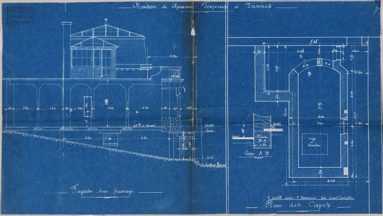 Façade sur passage et plan des caves par Huchet, entrepreneur, 26 juin 1914. AM Vannes 5I162.Immatriculation